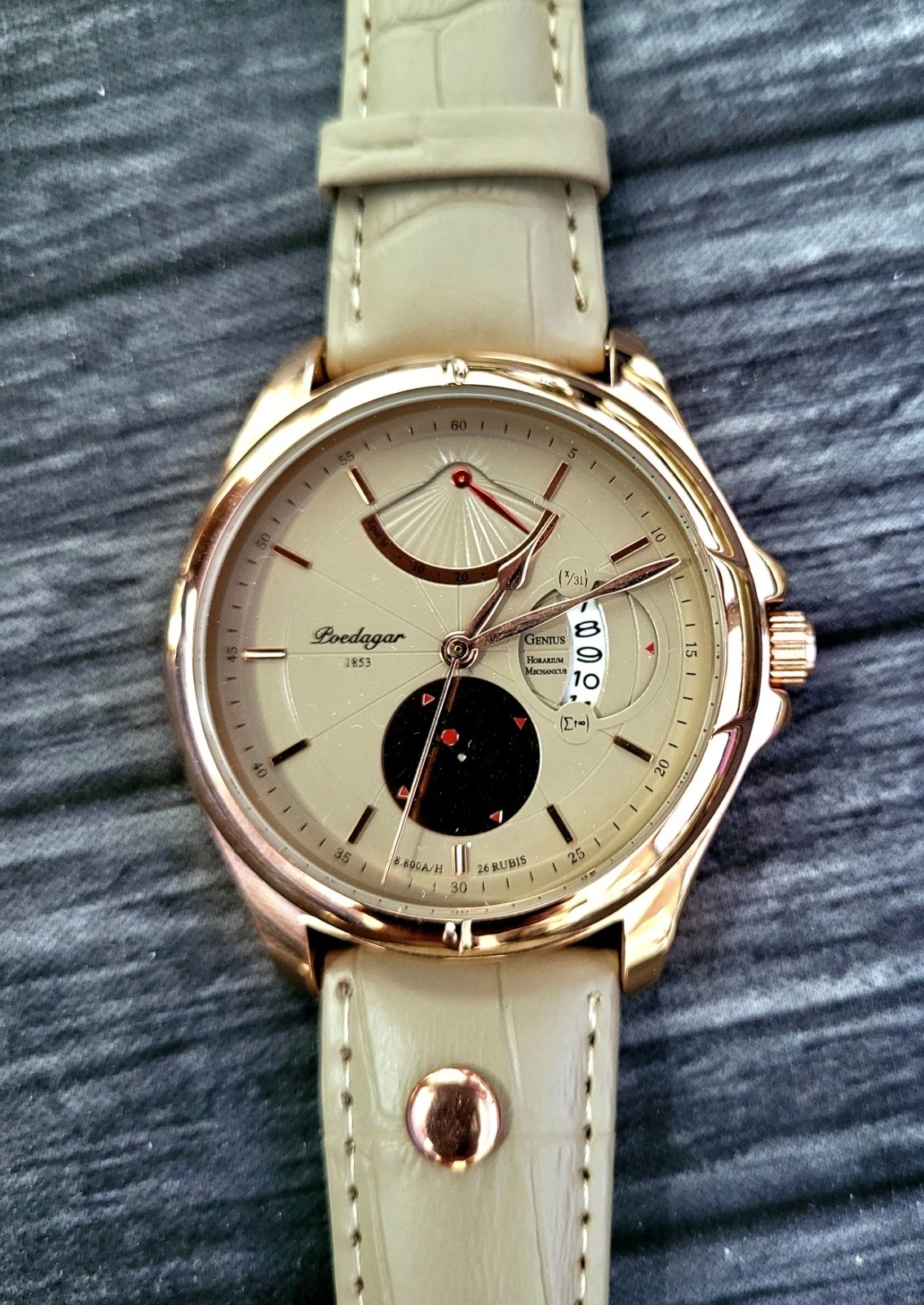 Extremely Rare and very Collectable Poedagar 1853 Genius 28 Jewel Rose Gold Mens Dress Watch
